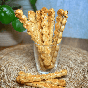 - *Alternativ kannst du die Stangen mit der Hand formen und auf ein mit Backpapier belegtes Backblech legen.