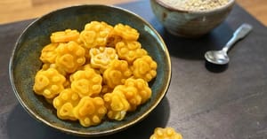 - Anschließend das Reismehl über die Teigmasse sieben und zu einem geschmeidigen Teig mit der Hand verkneten.