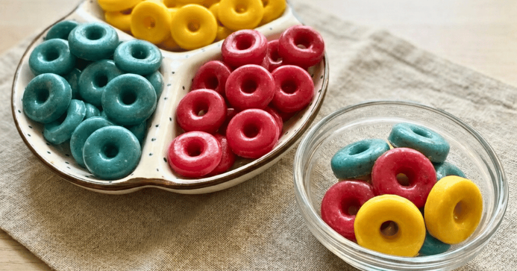 Dreifarbige Gummidrops für Hunde Rezept mit Kokosjoghurt
